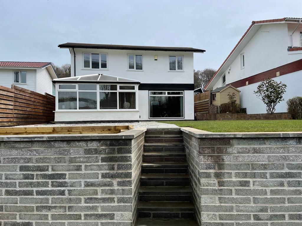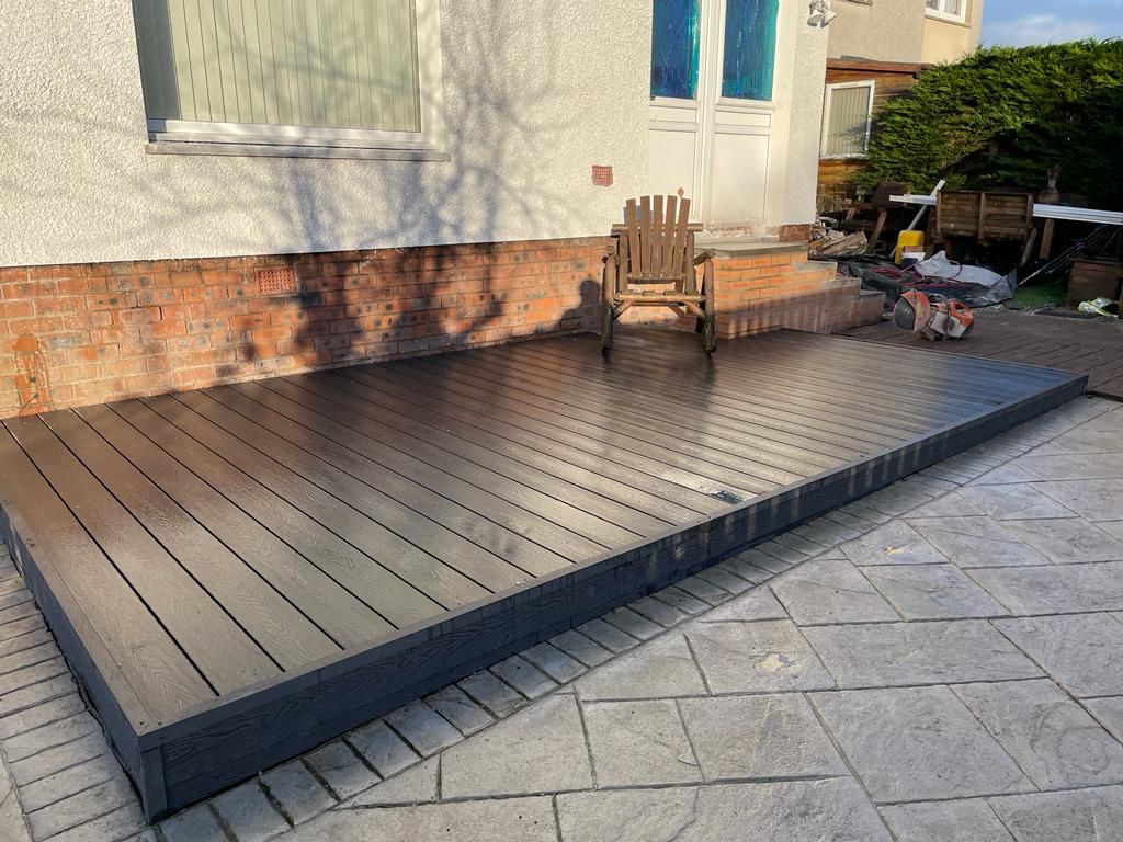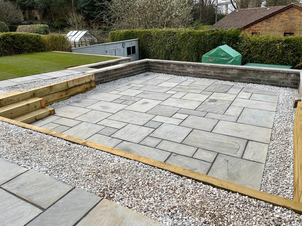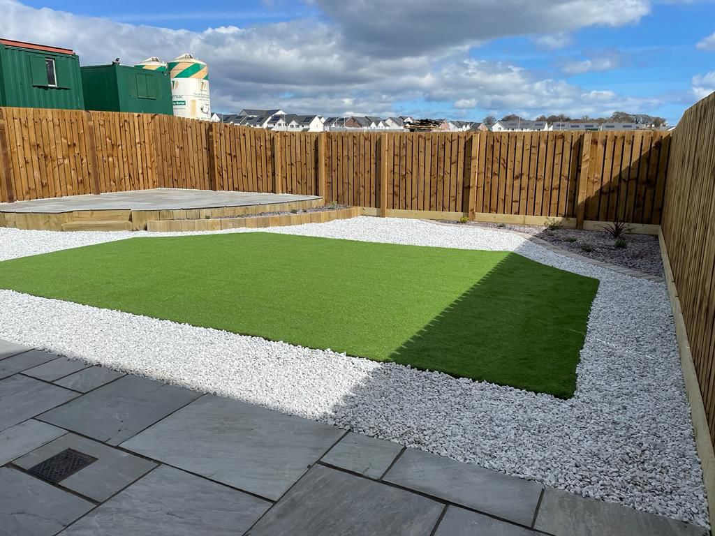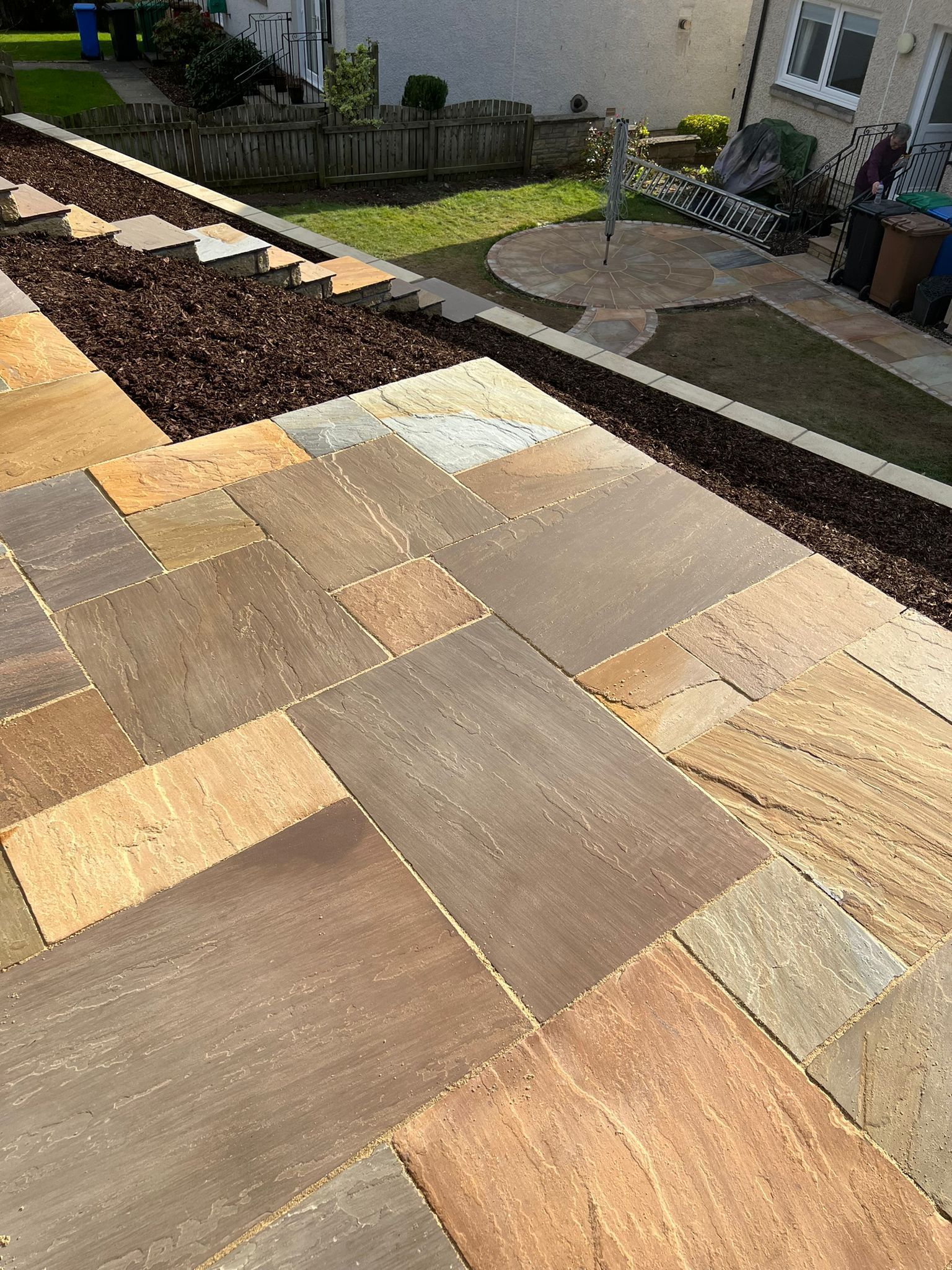 A bespoke garden transformation combining a natural stone pathway with decking to improve both access and usability of the outdoor space.